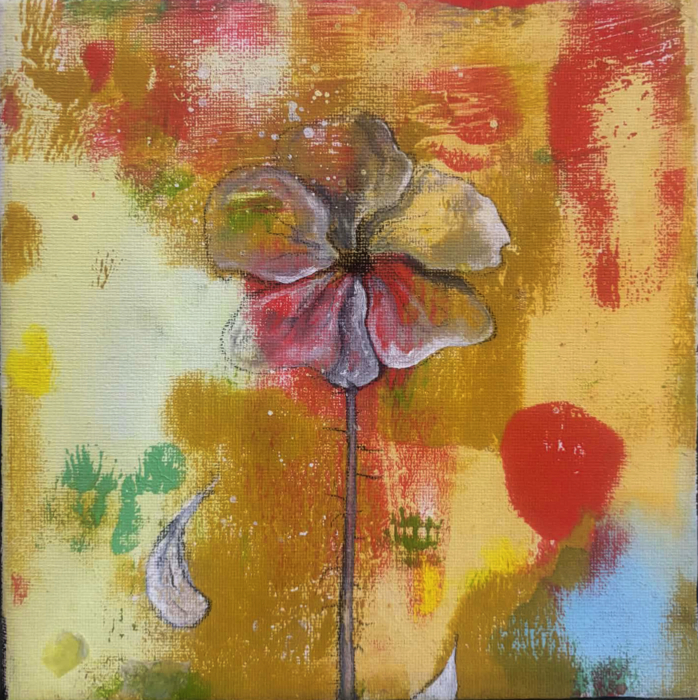 The artworks are made using mixed media: paints and recycled materials on canvas.